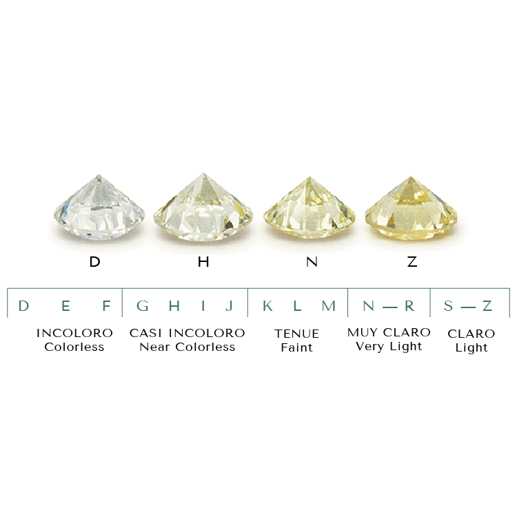 La escala de color va de la D a la Z, donde la letra D representa ausencia total de color y conforme se acerca a la letra Z, aumenta la tonalidad amarilla o café.