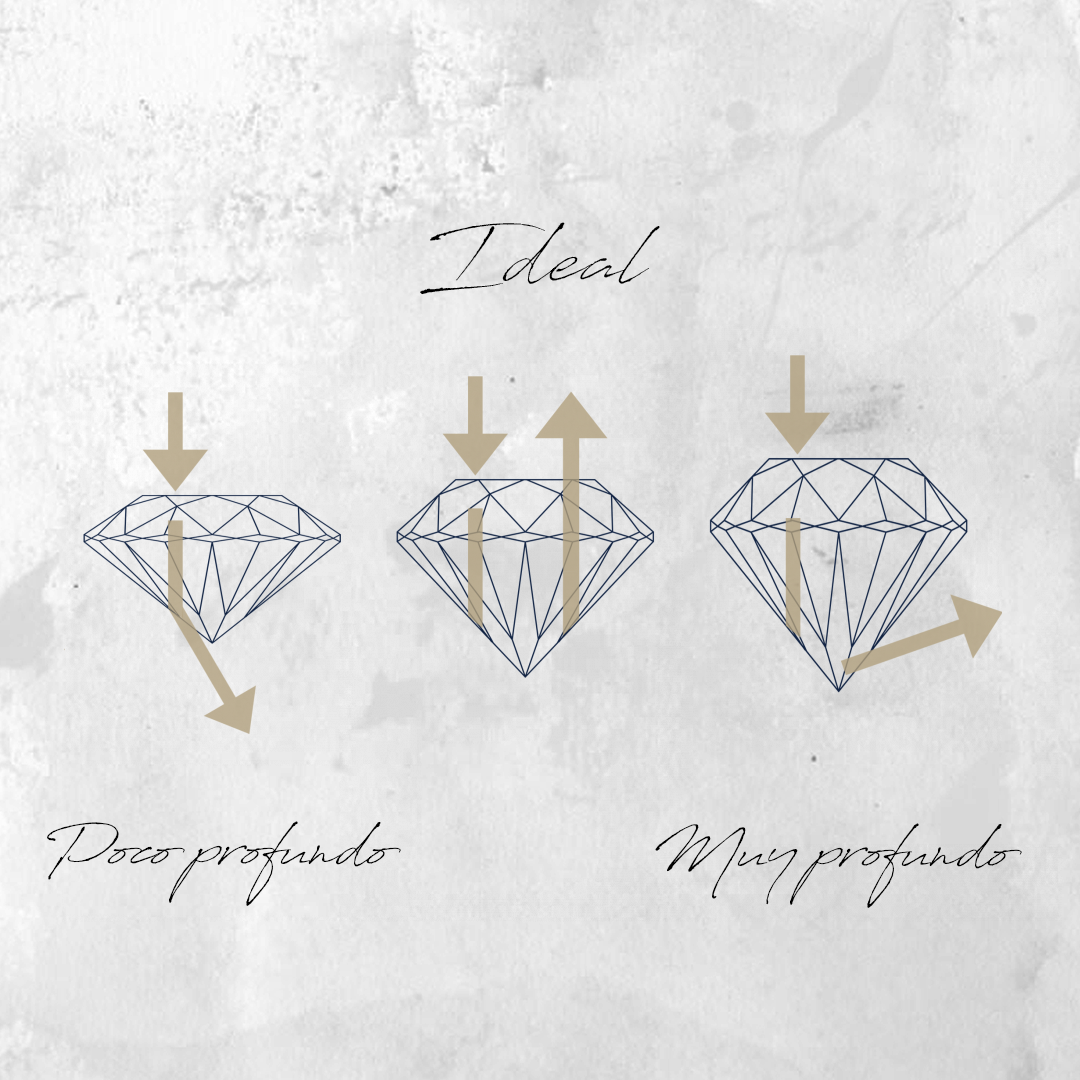 Un corte deficiente o malo según la escala GIA, poco o demasiado profundo, puede hacer que un diamante impecable luzca opaco, sin brillo y sin vida.