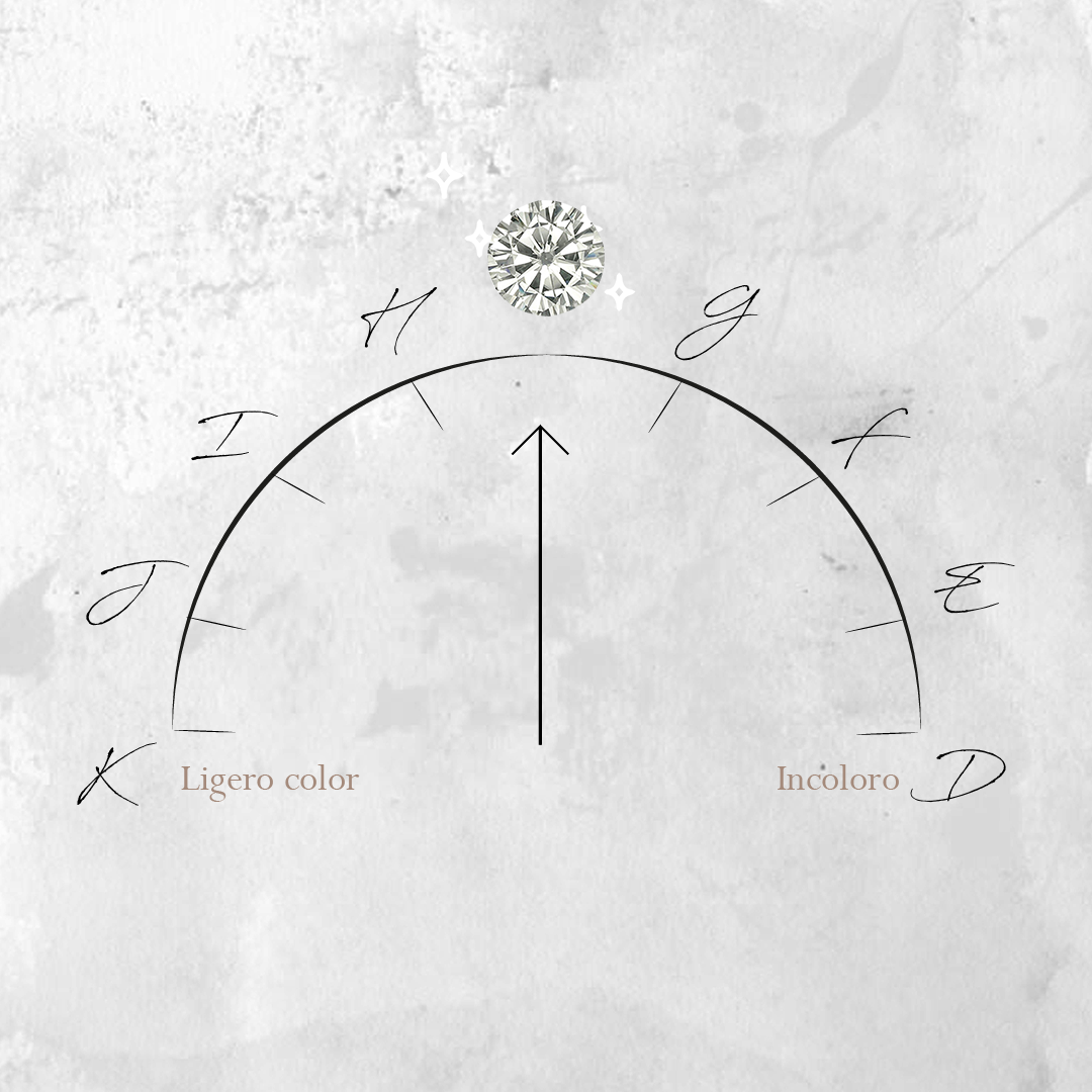 La escala de color de un diamante creada por GIA va de la D a la Z. La ausencia de color es lo más raro y escaso, por lo tanto, más valioso: incoloros D - E - F.